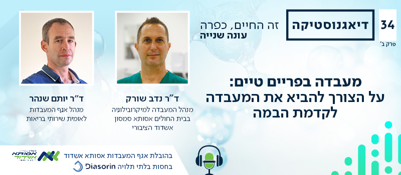בפרק זה (השני מתוך שניים) מארח ד״ר נדב שורק ד״ר יותם שנהר מנהל אגף המעבדות בלאומית שירותי בריאות.